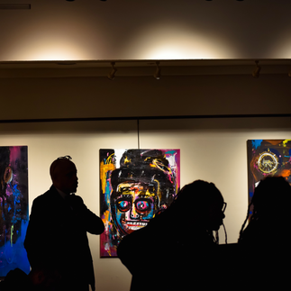 Wow! What a great experience this exhibition was! Our team had the opportunity to attend the opening of Vintage Vibes: "An ArtLife Art Experience" Exhibit to view the art By Andrew Brooks. Each art piece had its own story and perspective, and ranged from various sizes of over twenty large-scale acrylic and oil pen paintings on canvas ranging from 36” x 48” to 48” x 56” in size. The exhibit opening was held on Friday, January 6th from 6pm-9pm Downtown Fayetteville at the Arts Council. The art will be on display from Jan 6th-21st. So make sure you make your way down to the Arts Council to view the eclectic visionary artwork by Andrew Brooks.